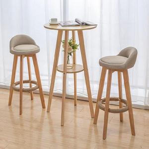 Cadeira de Bar Redonda Estofada com Estrutura de Madeira Ecológica, Banqueta Giratória de Madeira com Encosto