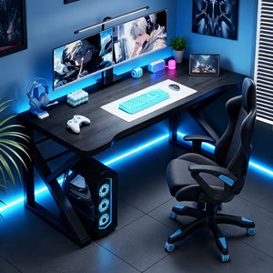Mesa de Computador de Metal para Casa, Conjunto de Mesa e Cadeira para Jogos, Tampo de Madeira Artificial, Escrivaninha Minimalista Moderna para Quarto e Escritório, Ideal para Casa de Aluguel