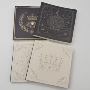 Caderno de Capa Dura com Colagem Quadrada 148*148mm Laminação Fosca Tecido 77 Folhas Tema Sol Lua Coroa para Escrita Diária