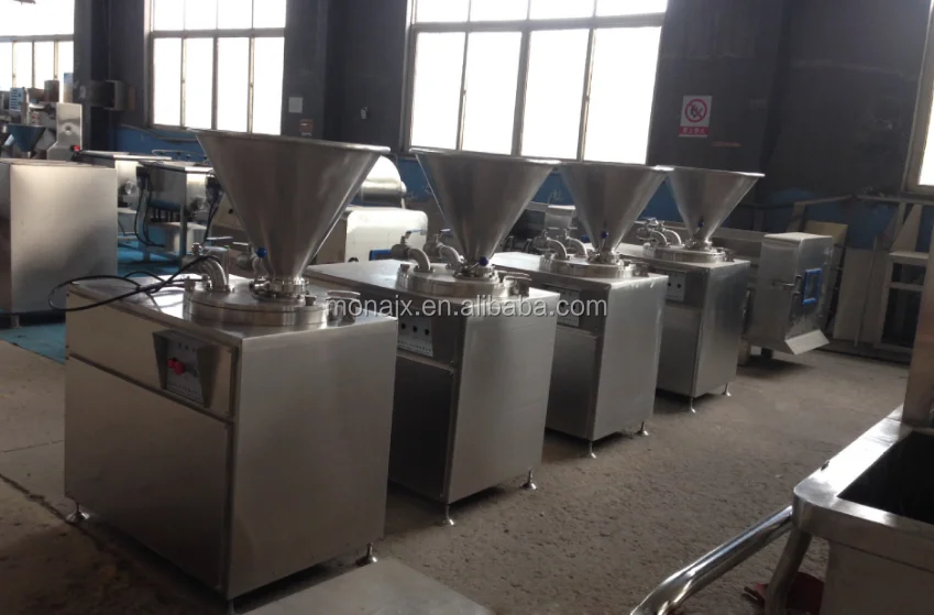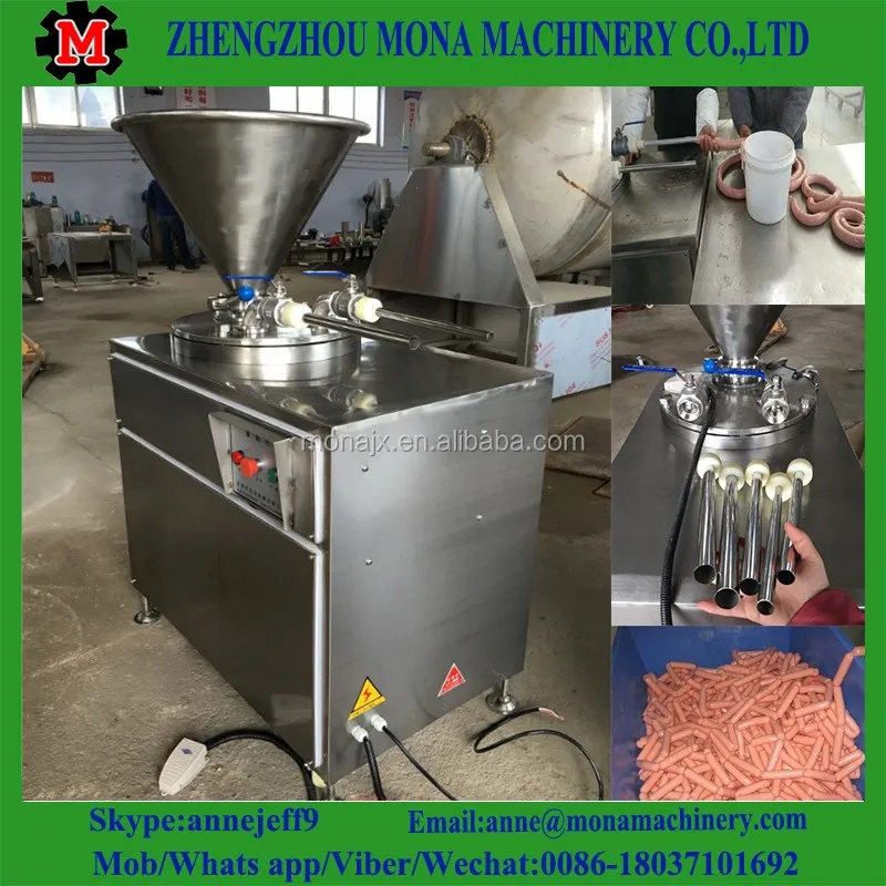 Enchimento de salsicha do vácuo profissional: Temos dois tipos de enchimento de salsicha do vácuo: pneumático tipo de quantidade, tipo de pressão hidráulica máquina manual de salsicha atar. 1. materiais de aço inoxidável de alta qualidade. 2. bom desempenho, estável em execução. 3. alcançar padrão de saúde enchimento de salsicha do vácuo.
