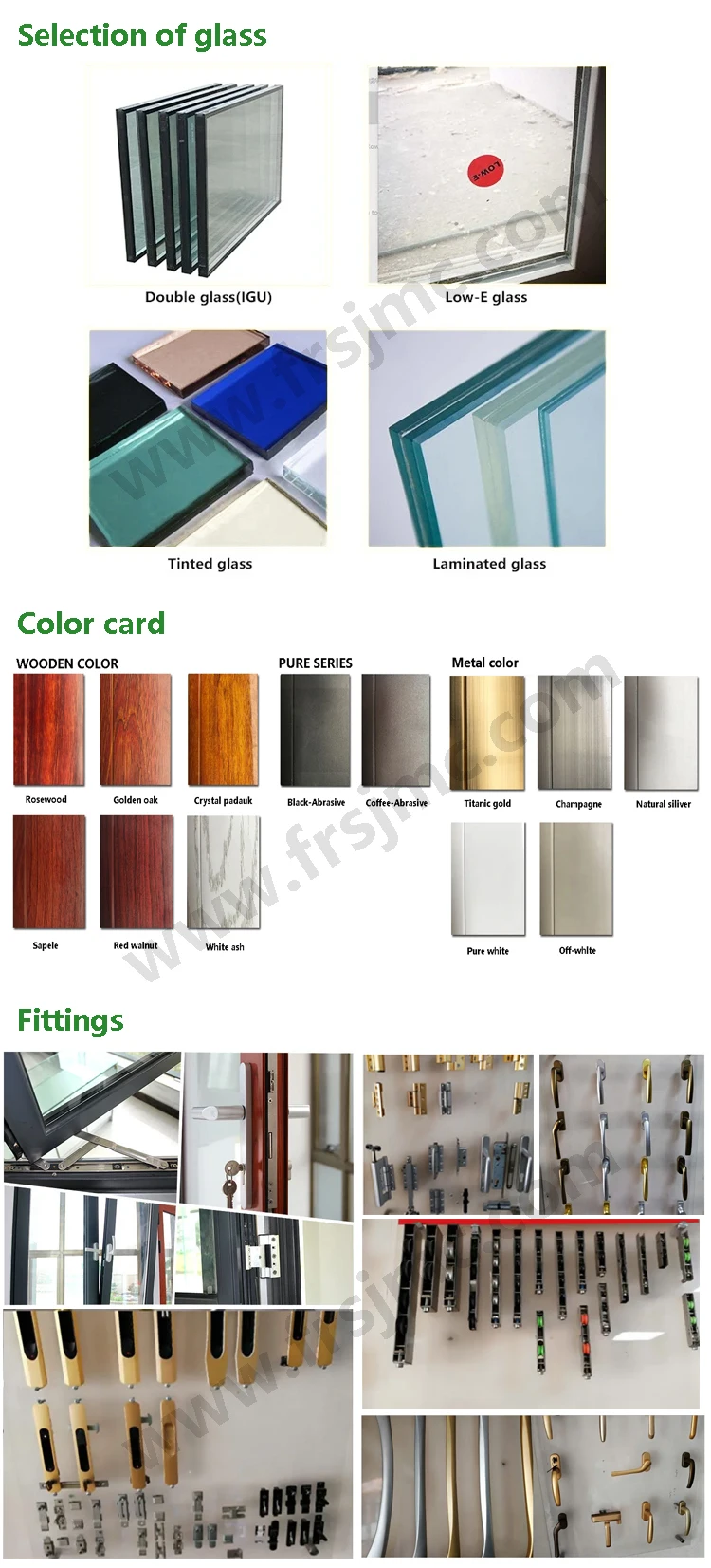 Nós somos um fabricante especializada em personalização de porta e janela, abrangendo: ligas de alumínio portas e janelas, upvc portas e janelas, portas e janelas de ferro, escondida enquadrado quadro da parede de cortina, etc. temos sido na indústria há 22 anos. O preço que nós definido para o produto é apenas um intervalo, o preço específico precisa ser determinado de acordo com suas necessidades, tais como a espessura do material, seleção de vidro, hardware e termos de comércio, os requisitos de embalagem. Geralmente a quantidade não exceda 3,000 metros quadrados e pode ser entregue para o terminal dentro 30 dias. Integridade e eficiência é a filosofia da nossa empresa. se você é um revendedor, podemos garantir que nossa qualidade e preço são muito competitivos em seu país. Se você tiver dúvidas, nós podemos fornecer amostras para livre. Por favor envie-nos um inquérito para mais detalhes!