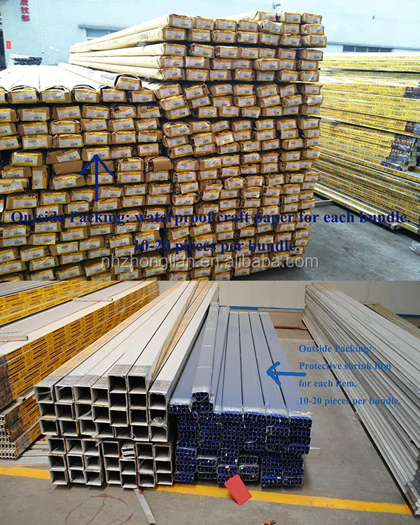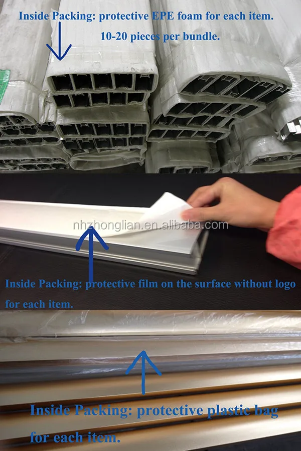 Perfil de alumínio para fazer portas e janelas Interior: embalado película plástica protetora para cada pc para proteger. Exterior: embalado com papel ofício à prova d' água na superfície.