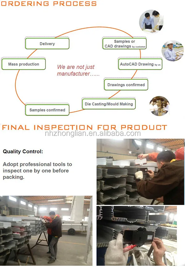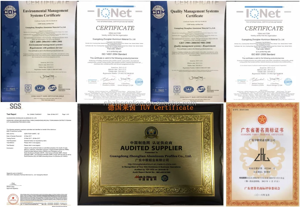 1) 6063-T5 perfil de alumínio padrão nacional.
