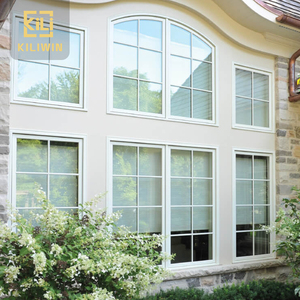 Foshan fábrica photochromic vidro triplo janelas de batente de alumínio grill design janela arqueada de estilo americano faixa metade rodada
